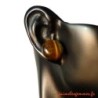Boucle d'oreille : cabochon oeil de tigre monté sur clou avec poussette papillon.