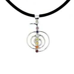 Pendentif 7 chakras composé de petites pierres naturelles facettées : améthyste, iolite, topaze, péridot, citrine, cornaline et grenat.