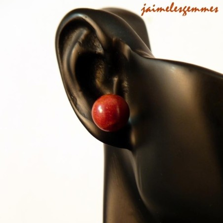 Boucle d'oreille : gorgone corail montée sur clou avec poussette papillon.